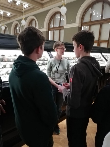 V úterý 5. dubna 2022 vyrazili vášnivý geolog a pedagog Petr Havránek se svou kolegyní bioložkou Editou Mikoláškovou a dětmi z Klubu zvídavého žáka 3. ZŠ U Říčanského lesa na expozici mineralogické sbírky Národního muzea v Praze. Sešlo se 32 zvídavých žáků z 8. a 9. ročníku. Do muzea jsme se dopravili vlakem. Žáci měli nejdříve v muzeu rozchod, aby si mohli sami prohlédnout vše, co je v muzeu zaujme. Pan učitel rozdal žákům pracovní listy vztahující se k minerálům. Žáci tyto listy poctivě vyplňovali a jejich znalosti budou následně vyhodnoceny. Poté jsme měli domluvenou komentovanou prohlídku mineralogické sbírky. Prohlídku doplňoval svými vynikajícími odbornými mineralogickými znalostmi pan učitel Havránek a doplňovala ho kolegyně Mikolášková znalostmi z oblasti chemie. Žáci tak propojovali znalosti z obou oblastí a svými zvídavými otázkami nešetřili. Dozvěděli se, že některé minerály jsou samotnými chemickými prvky, jiné sloučeninami s chemickým vzorcem, kde se v přírodě naleznou, v jaké podobě, jakou mohou mít soustavu, proč mají určité zbarvení, které a proč jsou tak drahé a vzácné. Udělali si tak představu o různých druzích minerálů, a také o tom, jak vypadají některé chemické prvky. Žáci vystavené vzorky hodně fotili, obdivovali tak krásné, blýskavé, barevné a krystalicky uspořádané minerály, které chtěli mít alespoň na fotce. (Edita Mikolášková)