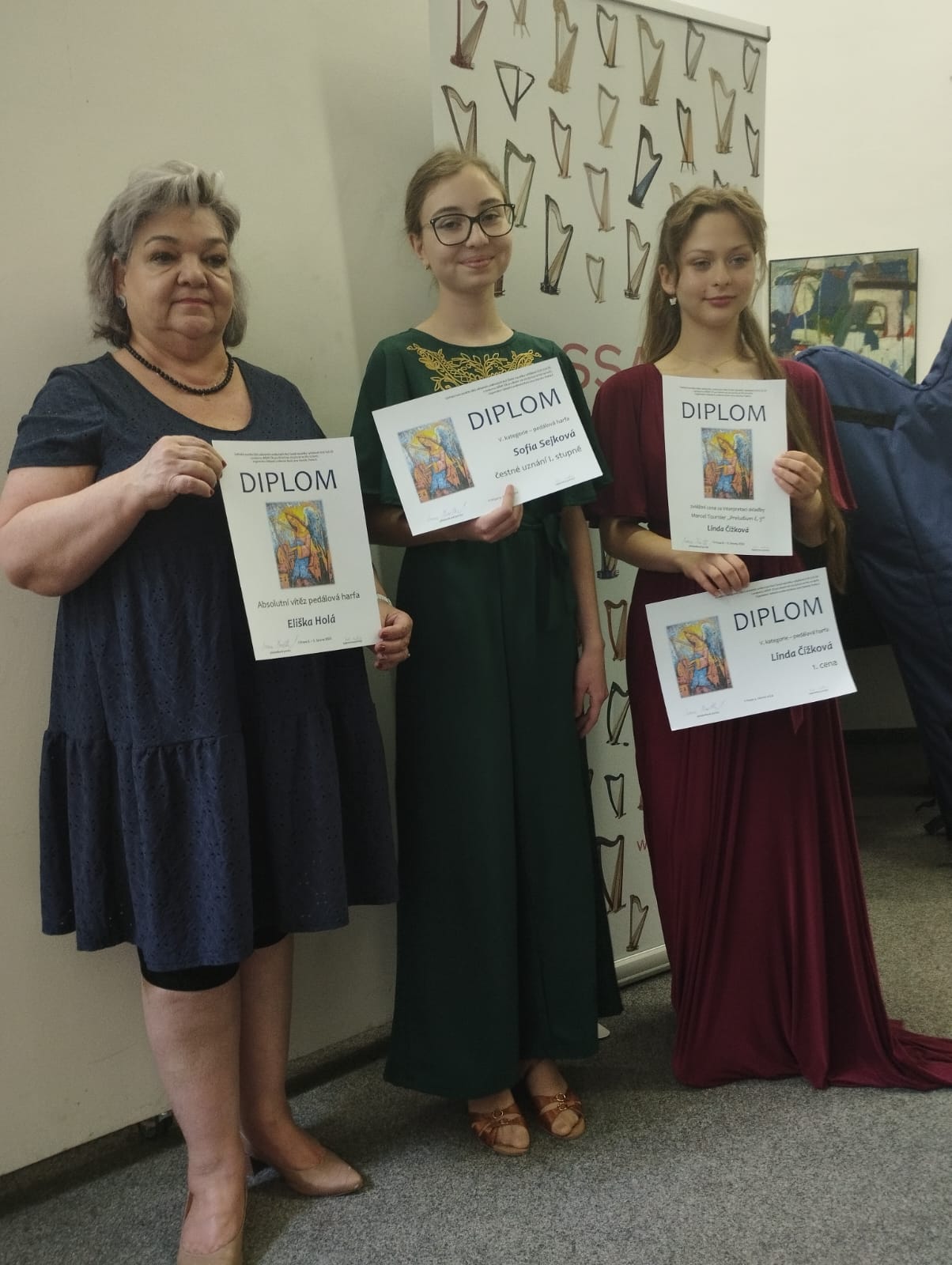 Všichni soutěžící jsou z harfové třídy paní učitelky Pavly Vondráčkové Jahodové. Gratulujeme!