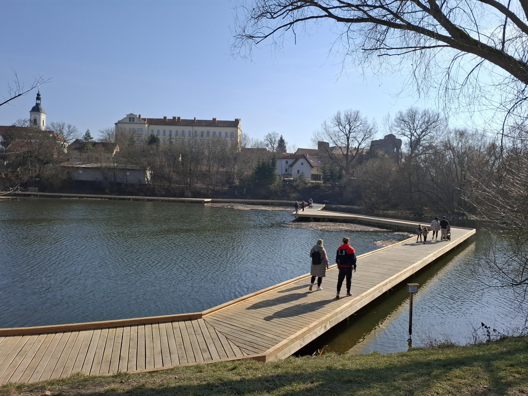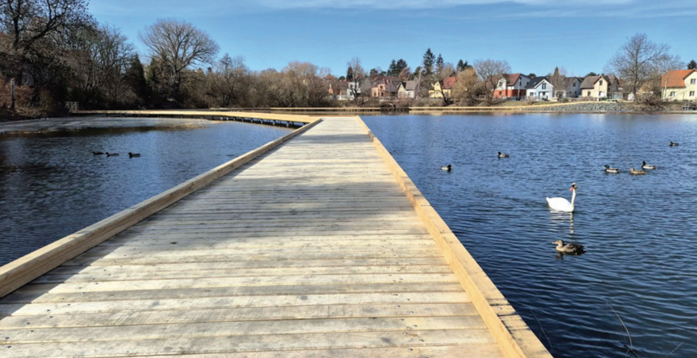 Na Mlýnském rybníku vyrostlo dřevěné molo, které spojuje zahradu u Husovy knihovny na Masarykově náměstí a ulici Podhrázská. Stezka široká 2,5 metru je vybavena několika odpočívadly, bezpečnostními světelnými body, zábradlím pro komfortnější vstup na molo a námrazovými čidly. Stavba za necelých 13 milionů Kč byla náročná – bylo nutné vypustit rybník, nechat dno vyschnout (při záplavových deštích došlo z bezpečnostních důvodů k částečnému napuštění). Zajímavostí je, že některé nosné piloty firma zavrtávala až osm metrů hluboko…